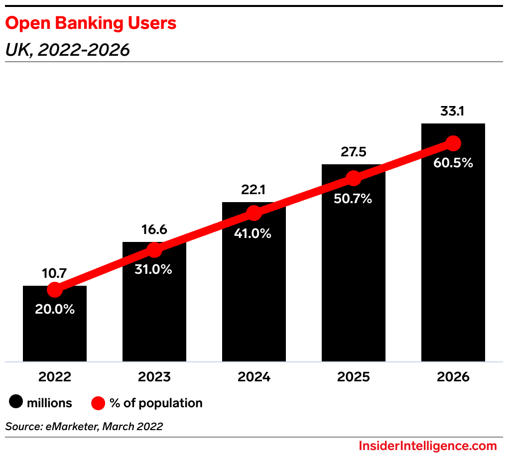The report’s plan to develop open banking in the country is light on detail but timely: Open banking users are projected to grow 72% this year to hit 10.7 million, per Insider Intelligence forecasts.