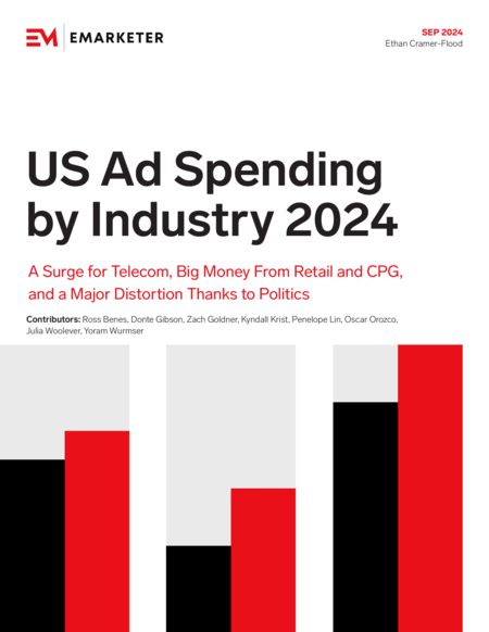 The “other” category will take second place in growth this year, thanks to political ad spending. “Other” comprises a smorgasbord of smaller ad spenders such as real estate, nonprofits, professional services, energy, manufacturing, industrials, politics, and education. Once every four years, the political portion of that equation surges. US digital political ad spending will spike by 362.6% this year, propelling “other” to unusual outcomes in many of our industry ad spending rankings.