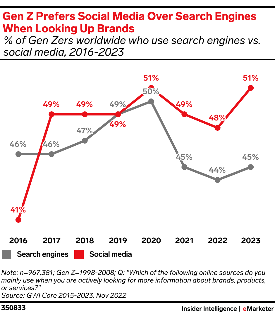 Key Stat: Gen Zers are more likely to use social networks than search engines when looking up brands, products, or services, according to GWI.