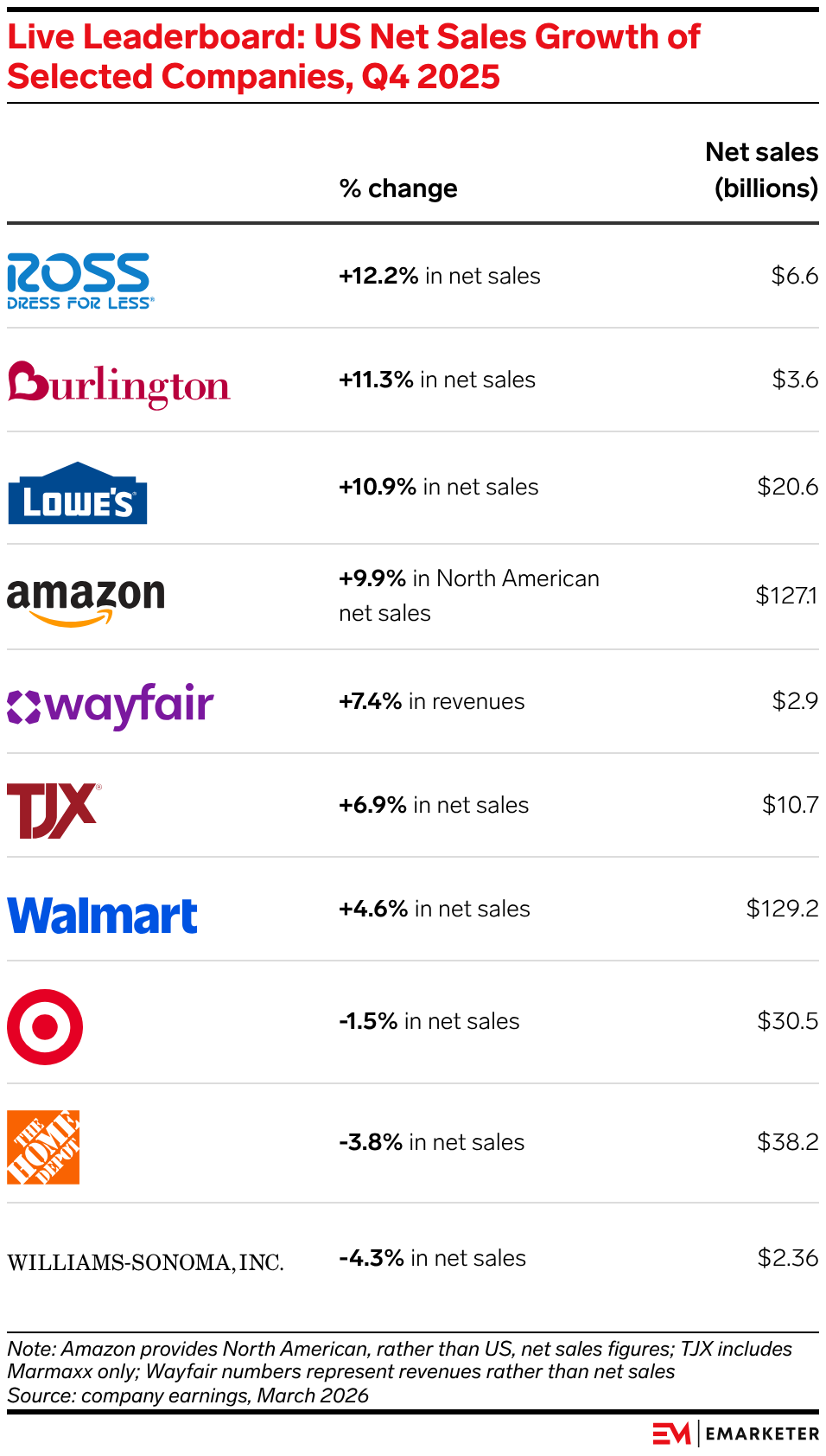 • Amazon and Walmart strengthened their hold on consumer spending in Q4, as their ability to offer low prices and fast delivery resonates strongly with value-conscious shoppers.