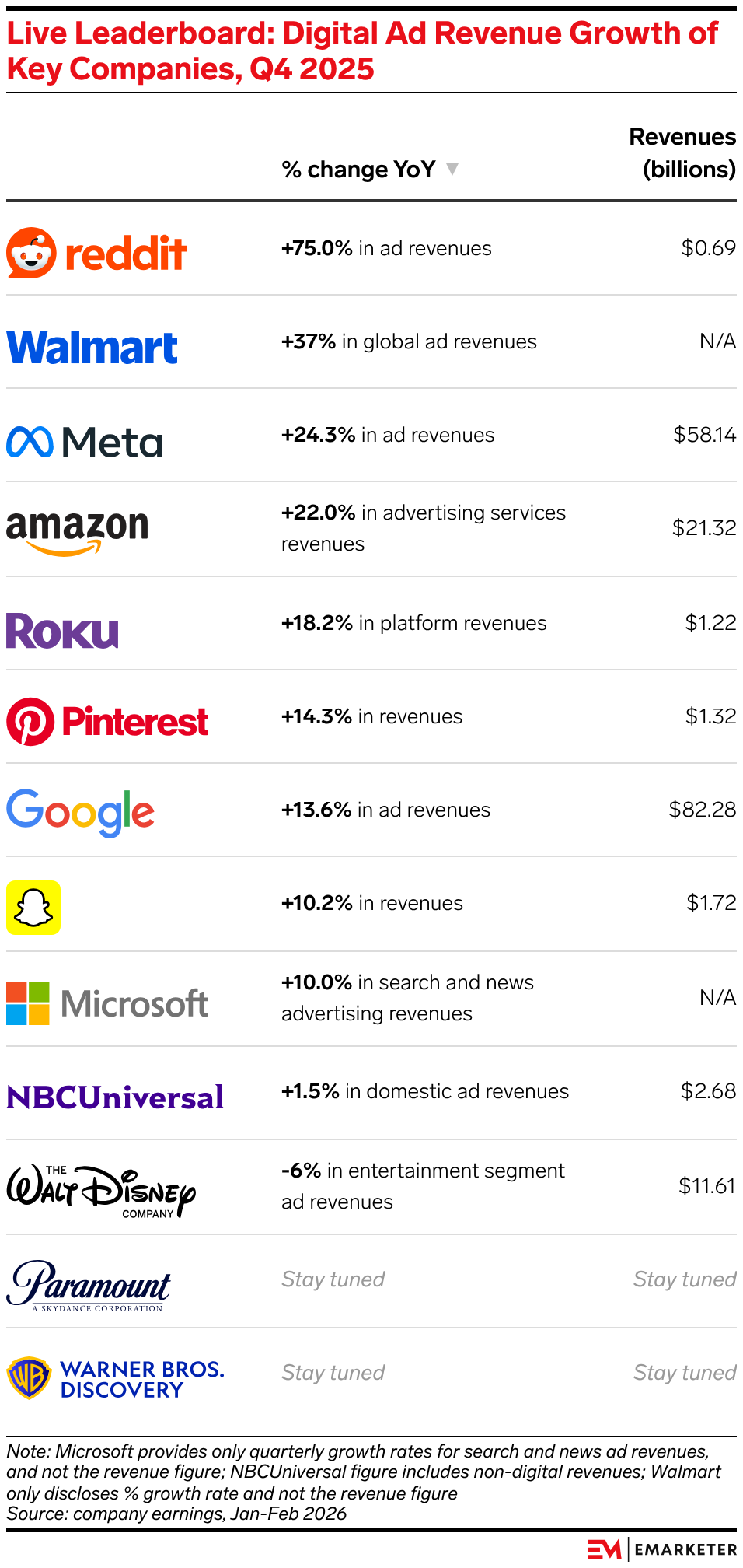 Last updated with Warner Bros. Discovery earnings on February 27, 2026.