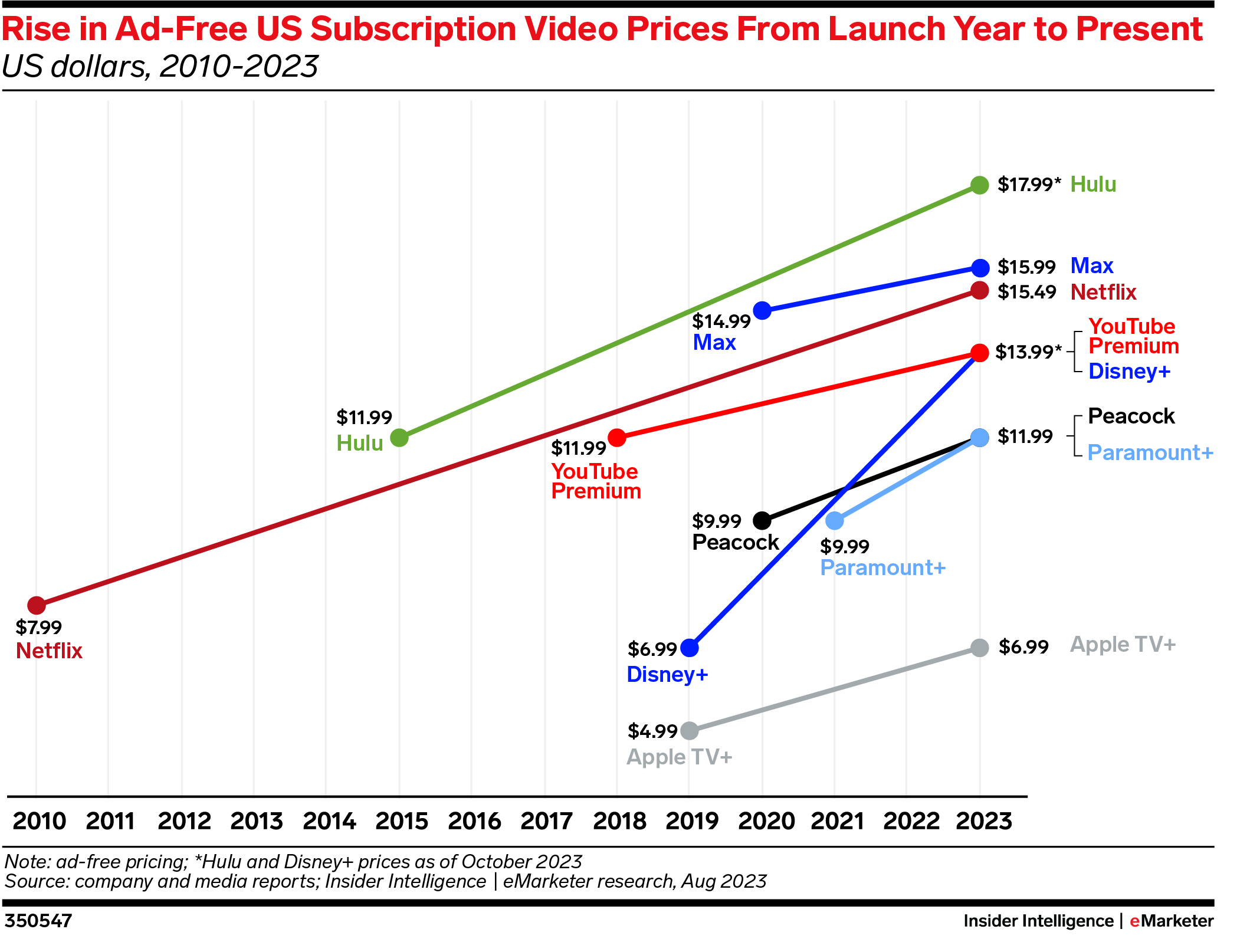 - Most streaming services increased subscription prices this year. Ad-free tiers of major streaming services increased by about 25% in the last year, according to The Wall Street Journal.