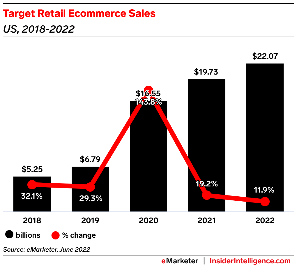The big takeaway: Despite short-term challenges due to its failure to foresee the abrupt shift in consumer spending habits, Target remains focused on its long-term ecommerce strategy that builds on its existing assets. That approach should put the retailer in a strong position to thrive as ecommerce grows its share of overall sales.