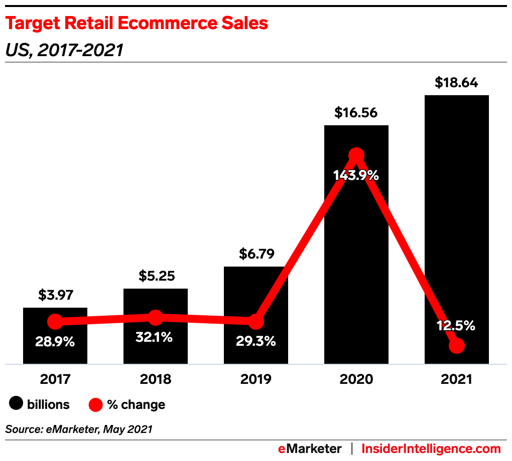 With its online sales growing 12.5% in 2021, Target will climb the rankings to claim the No. 6 spot in our top 10 US etailers list.