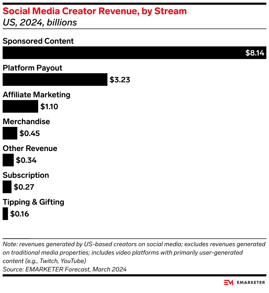 Our take: To remain financially viable in the face of new competition, influencers now need to explore multiple revenue streams beyond just social media, such as subscriptions, merchandise, and events.