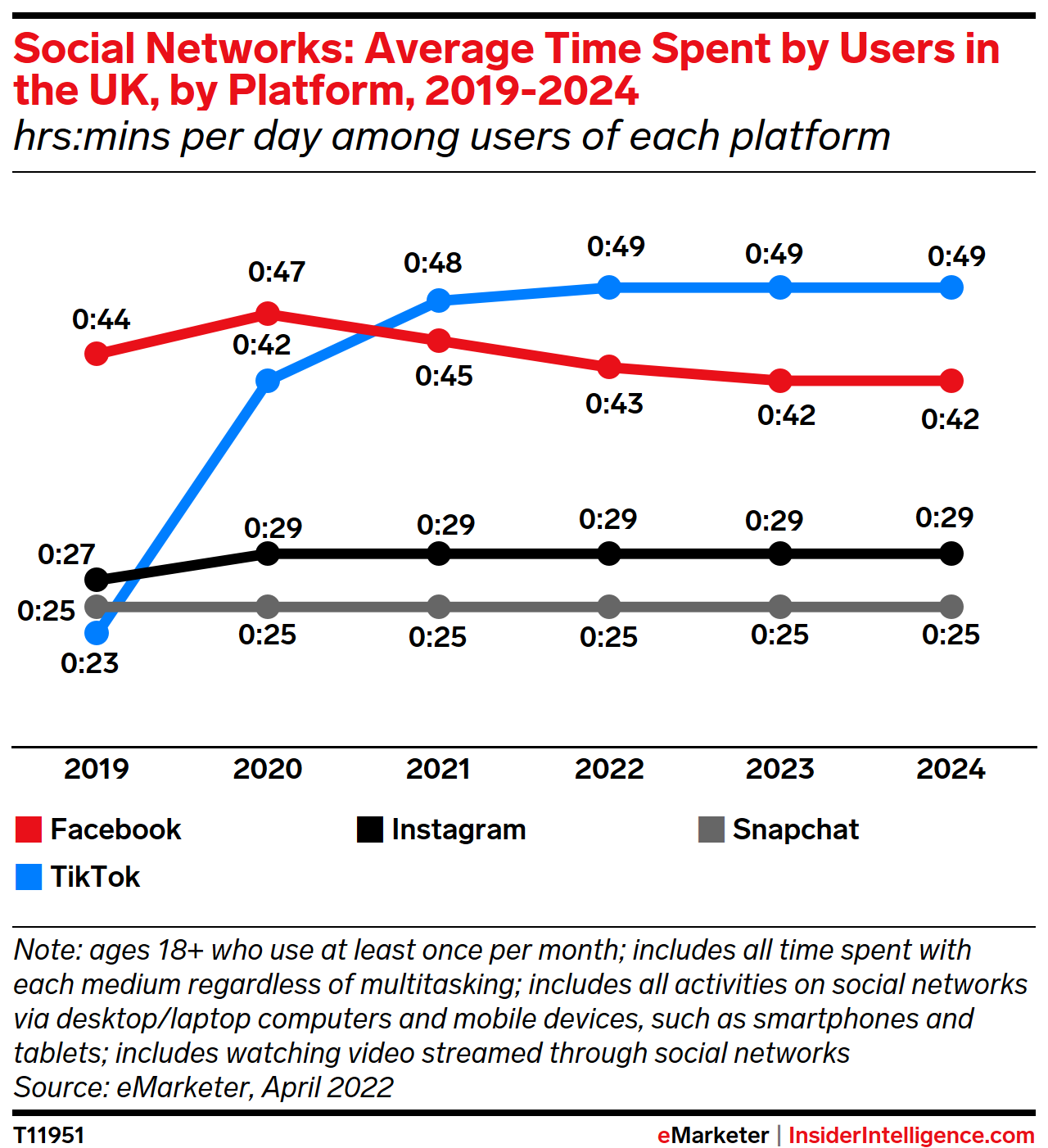 Ad revenue goes up and up: With TikTok commanding more of adults’ time–this year, those ages 18 and up will spend an average of 49 minutes daily on the app–its share of UK ad revenues will climb. This year, those revenues will rise 190.2% with double-digit increases continuing through 2024.