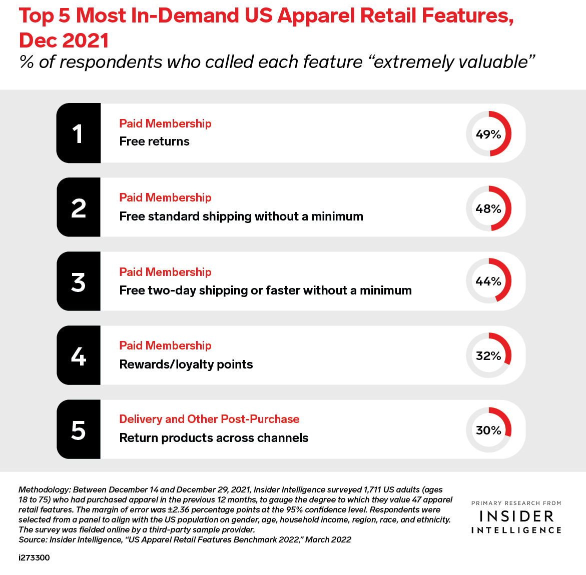 KEY STAT: Shipping and returns features were the most valuable to US apparel buyers. As apparel consumption continues to shift to online, these types of features will remain top of mind for shoppers.