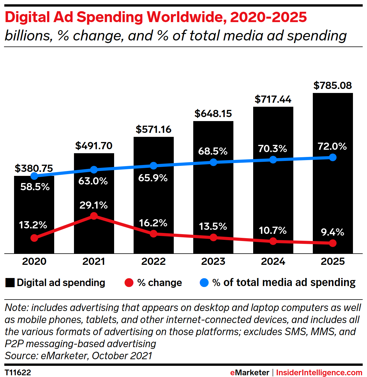 KEY STAT: Advertisers worldwide will spend over half a trillion dollars on digital ads next year, but the tremendous growth seen in 2021 will cool off considerably in the coming years.