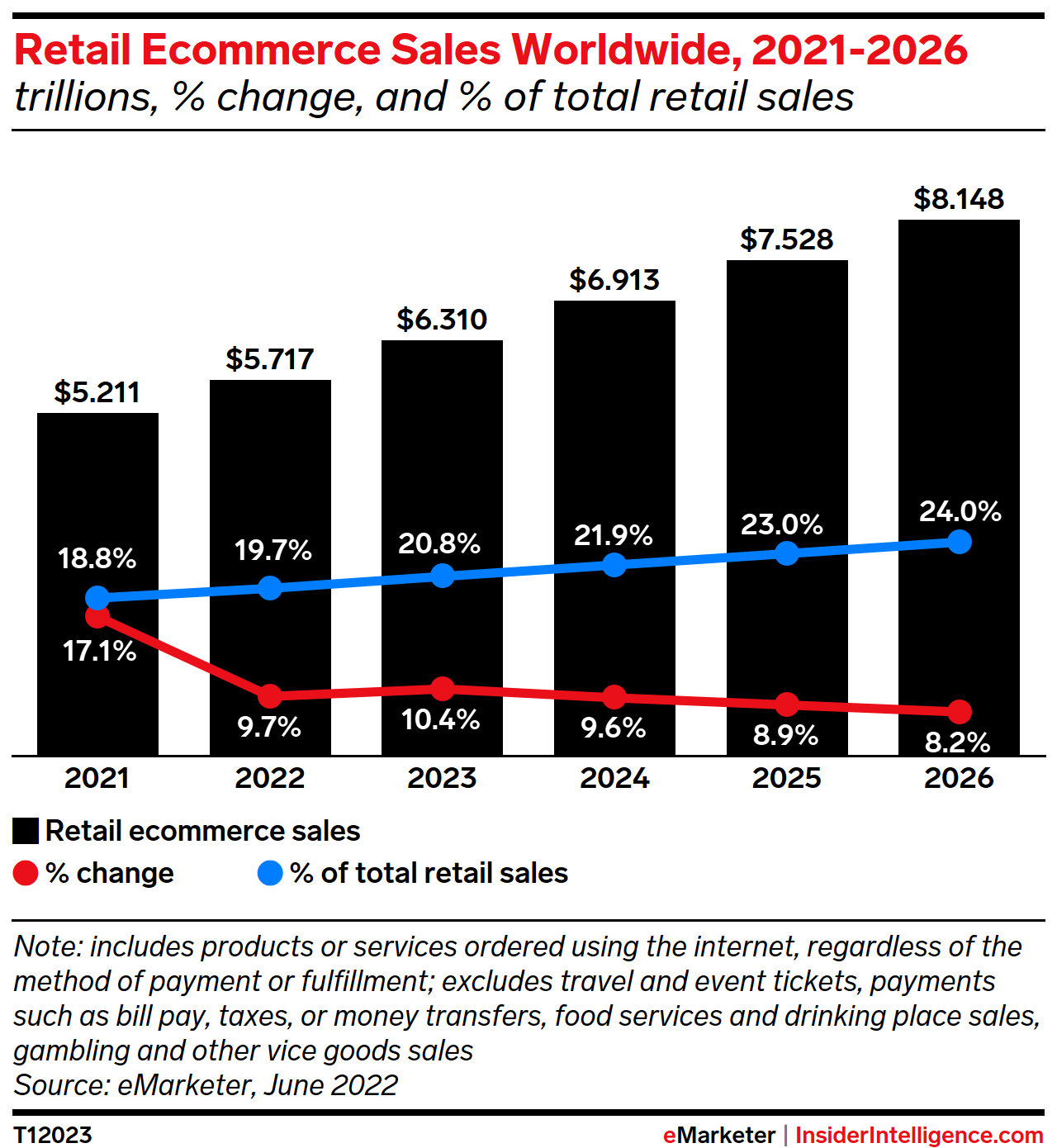WHAT’S IN THIS REPORT? Our updated worldwide, regional, and country-level forecast for total retail sales, including ecommerce and mcommerce, and digital buyers through 2026.