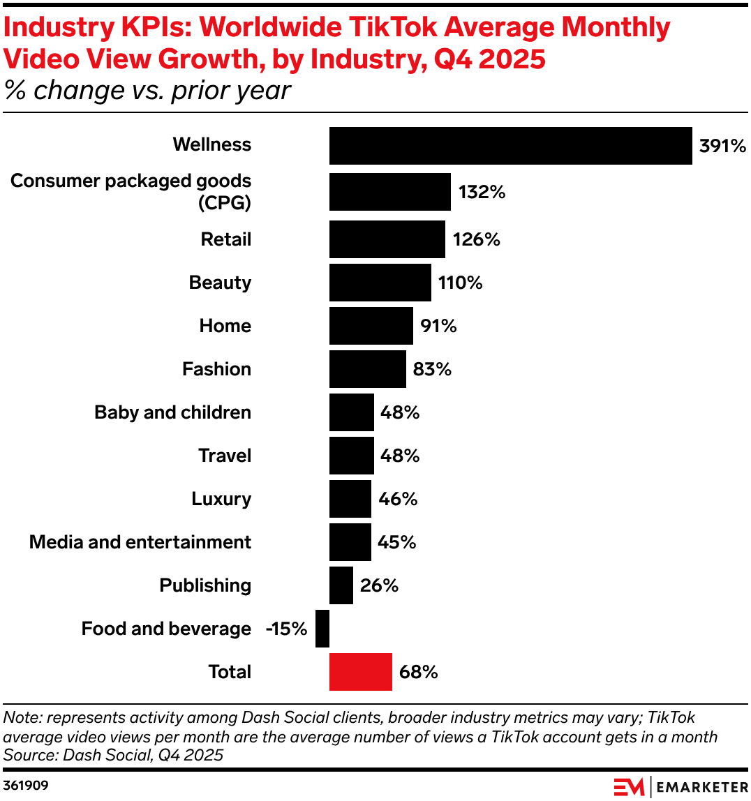 Q4 TikTok video views jumped 68% as wellness, CPG, and retail soared—proof TikTok is now a sales engine.